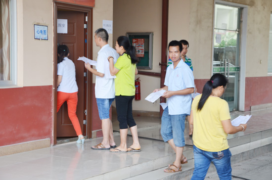 本次體檢項目包括血壓、血常規(guī)、內(nèi)科、肺功能、心電圖檢查等,對涉及職業(yè)危害的粉塵和噪聲等崗位進行了肺功能、電測聽等職業(yè)病防治監(jiān)護檢查。為做好此次體檢工作,公司行政人事部提前與廣西水電醫(yī)院工作人員聯(lián)系體檢事宜,針對不同工種的員工,體檢項目也作了相應(yīng)區(qū)分,并要求各單位提前做好相關(guān)準(zhǔn)備工作。