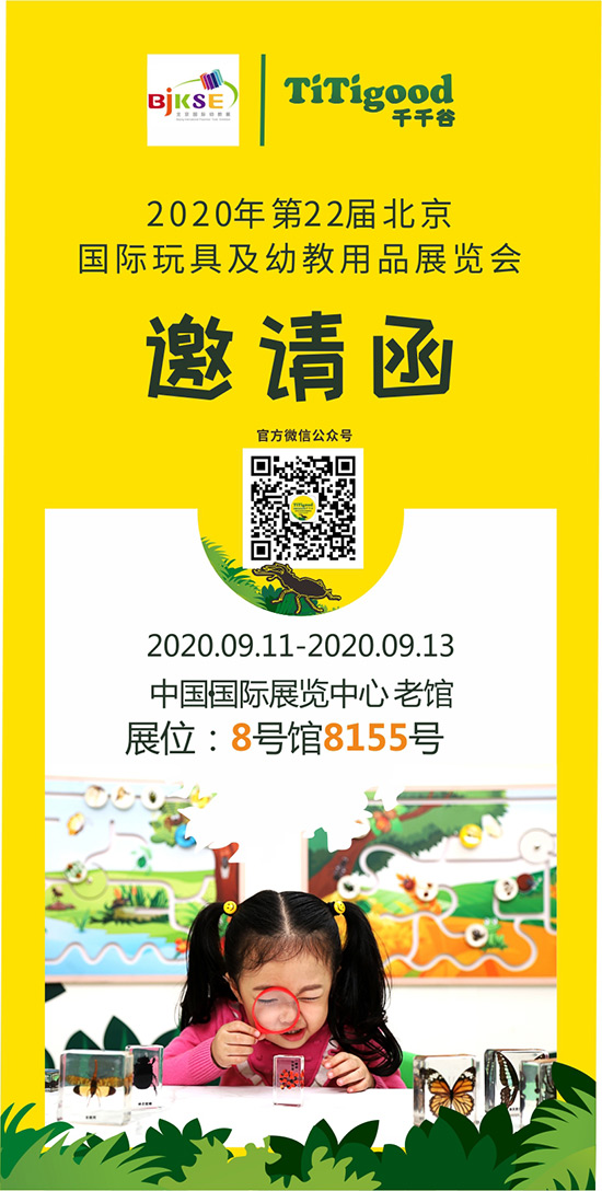 2020年9月11日至13日,千帆攜自主品牌“TiTigood千千谷”兒童自然科學標本等系列產品參加第22屆北京國際幼教用品展覽會。誠摯的邀請您蒞臨展位現(xiàn)場參觀咨詢。